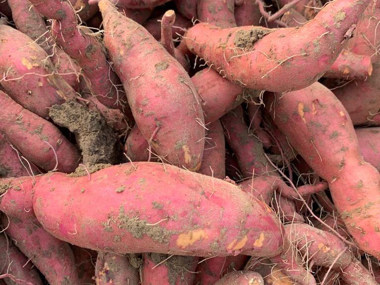 Die Sorte „Beauregard“ bedeckt das Feld mit Trieben von bis zu zwei Metern. Das typische orangefarbene Fruchtfleisch und den süßcremigen Geschmack lässt die nährstoff- und vitaminreiche Knolle in der Küche vielseitig einsetzen. Der Erntezeitpunkt ist Mitte Oktober.